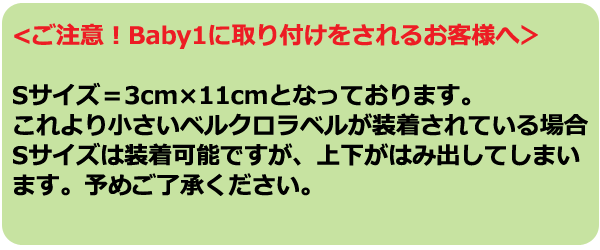 これより小さいベルクロラベルが装着されている場合、Sサイズは装着可能ですが 上下がはみ出してしまいます。