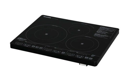 ●商品サイズ(cm):幅約56×奥行約45×高さ約6●重量:約73kg●材質本体:ポリアミドトッププレート:結晶化ガラス●電源:単相200V 50/60Hz●消費電力:4000W●電源プラグ:2極 接地極付き250V 20A●タイマー火力1〜5:1分〜9時間50分火力6〜9:1分〜1時間●火力調整【左ヒーター】揚げ物調理:6段階(150〜200℃)加熱調理:9段階(約100W相当〜約2500W)【中央ヒーター】加熱調理:7段階(約100W相当〜約1500W)【右ヒーター】加熱調理:8段階(約100W相当〜約2000W)●電源コード長さ:約0.8m(3芯キャブタイヤコード)●カラー・型番:ブラック(IHC-S324-B)【使えるなべ】●材質:鉄・鉄鋳物、耐熱ホーロー、ステンレス、多層鋼なべ●大きさ左ヒーター:直径12〜26cm ※湯沸かしの場合は直径15〜23cm右・中央ヒーター:直径12〜20cm●形状:底の平らなもの、反りが3mm以下のもの【使えないなべ】●材質:耐熱ガラス、陶磁器・土なべ、アルミ・銅●大きさ:直径12cm未満のもの●直径12cm未満のもの、トッププレートからはみ出すサイズのもの●形状:中華なべなど底が丸いもの、底に段がありトッププレートに密着しないもの、脚があるもの※材質や大きさにより使える鍋と使えない鍋があります。