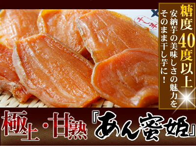 種子島安納地区で最上級のブランド安納芋『プレミア蜜芋』を栽培する名人と、独自の秘法を持つ干し芋作りの達人が、人生をかけてこだわり抜いた職人技が ついに完成させた究極の干し芋、しっとり極甘『あん蜜姫』。